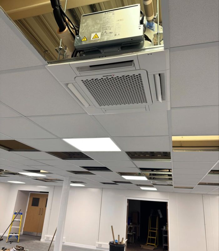 These range from wall mounted to ceiling cassette to ducted or DX AHU air conditioning system options from small offices or comms rooms to large open plan areas.